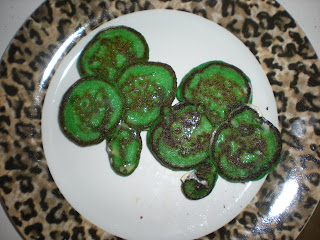For St. Patty's Day breakfast Brin and I made lovely green shamrock pancakes with chocolate chips. They were quite delicious and a beautiful shade of green.